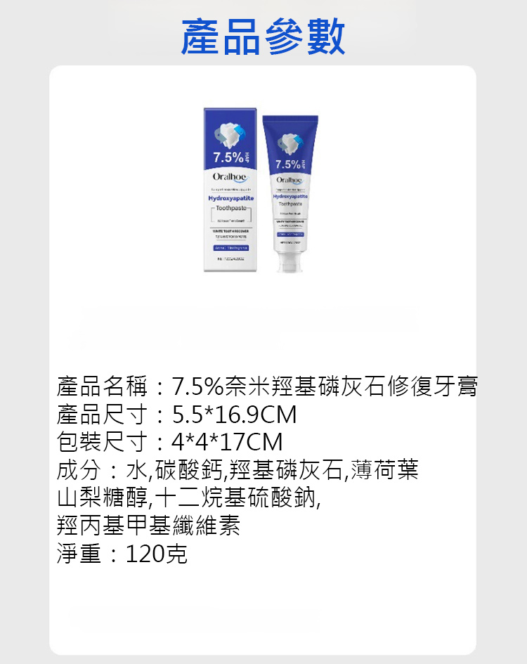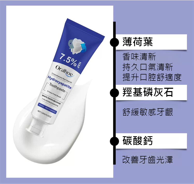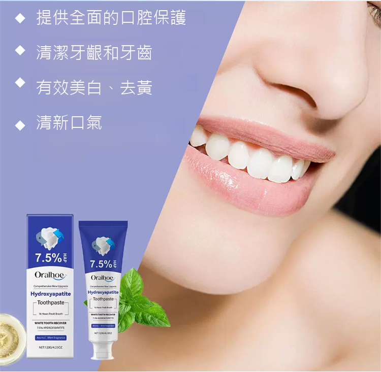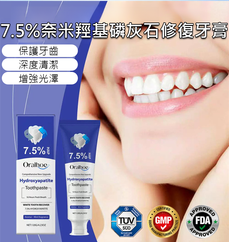 7.5%奈米羥基磷灰石修復牙膏
